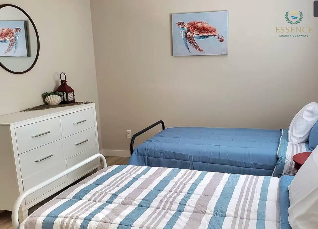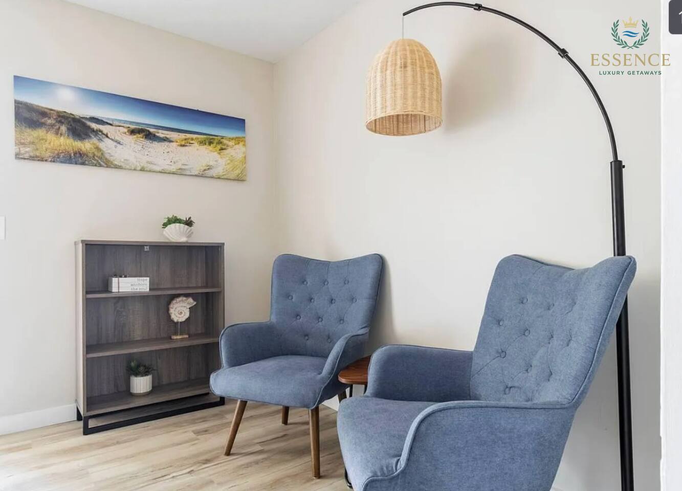 Step into a thoughtfully designed home where every detail invites you to unwind. The open-concept living area features cozy seating, a smart TV, and plenty of natural light perfect for lounging after a day in the sun. The fully equipped kitchen has everything you need to cook and share meals together. Both bedrooms offer plush bedding and calming beach-inspired décor, ensuring a peaceful night’s rest. Highlights: 2 spacious bedrooms (sleeps up to 6 guests) 2 full bathrooms Fully equipped kitchen & dining area Smart TV + high-speed Wi-Fi Washer & dryer for convenience Private balcony for morning coffee or evening drinks. 💙 Relax. Reconnect. Recharge. From morning strolls on the sand to sunset cocktails on the balcony, Serenity by the Sea is all about effortless living and unforgettable moments. Just pack your suitcase we’ve taken care of everything else.