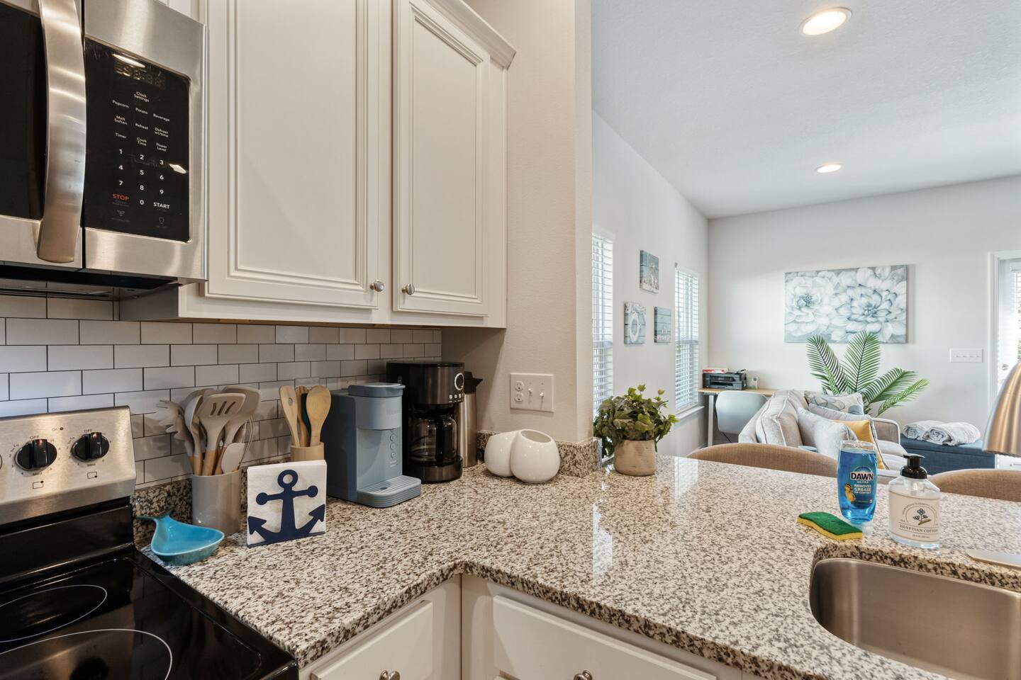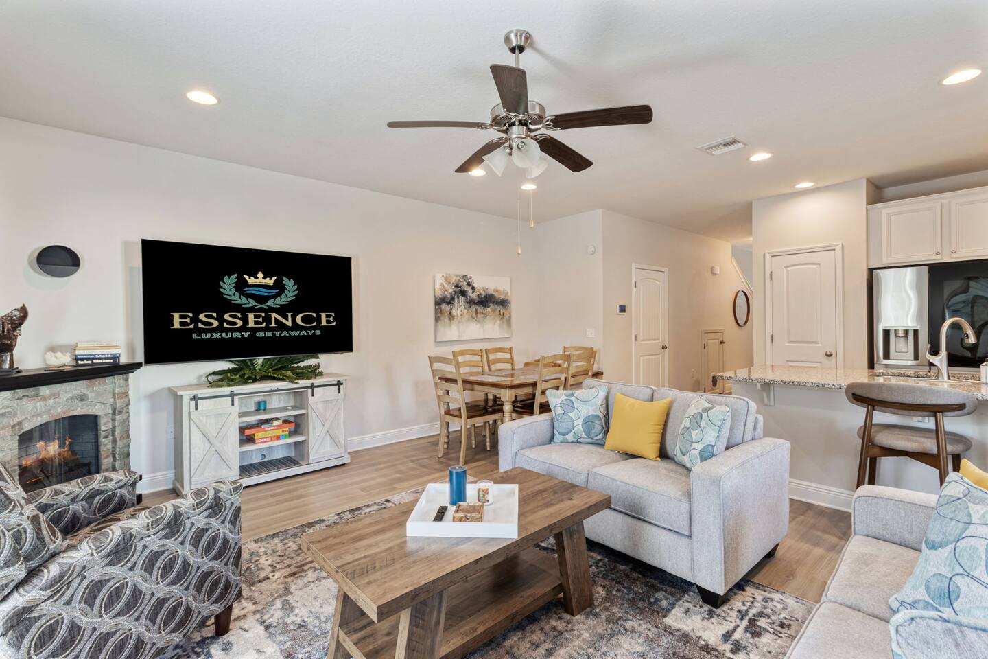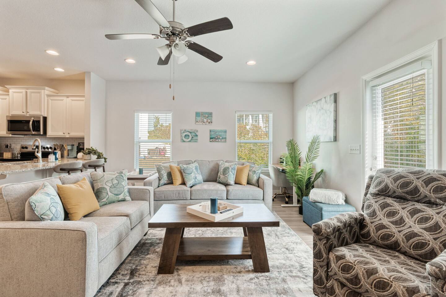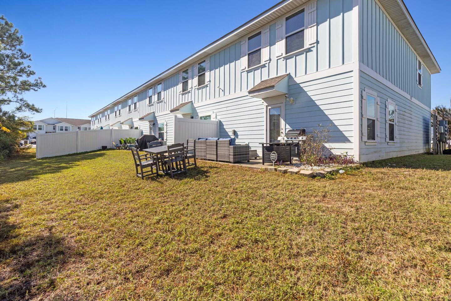 What You’ll Love About the Space Welcome to Paradise on Pointe, A stylish corner-unit townhome that offers the perfect mix of comfort, space, and convenience just minutes from the sugar-white sands of Panama City Beach. Spacious Layout for Relaxation and Gathering This home features 3 bedrooms and 2.5 bathrooms, giving everyone plenty of space to relax. The open-concept living area is designed with comfort in mind you can kick off your shoes and unwind on the cozy sectional sofa as natural light fills the room. It's a great spot to spend time together after a day at the beach. Modern Kitchen & Dining The fully equipped kitchen is perfect for morning coffee or cooking meals at home. It flows seamlessly into the spacious dining area, where you can enjoy meals together, play games, or simply connect and relax. Comfortable Bedrooms Each bedroom is thoughtfully decorated with coastal-inspired touches, creating a peaceful atmosphere for a good night’s sleep. The master bedroom includes an ensuite bathroom, while the other two bedrooms share a second full bathroom. There’s also a half bathroom downstairs for added convenience. Prime Location You’ll be just a short drive from Panama City Beach’s best dining, shopping, and entertainment, as well as the beautiful beaches the area is known for. Resort-Style Ease From the calming décor to convenient amenities, every detail is designed to make your stay stress-free and comfortable whether you’re here for a family vacation, group trip, or romantic beach escape.