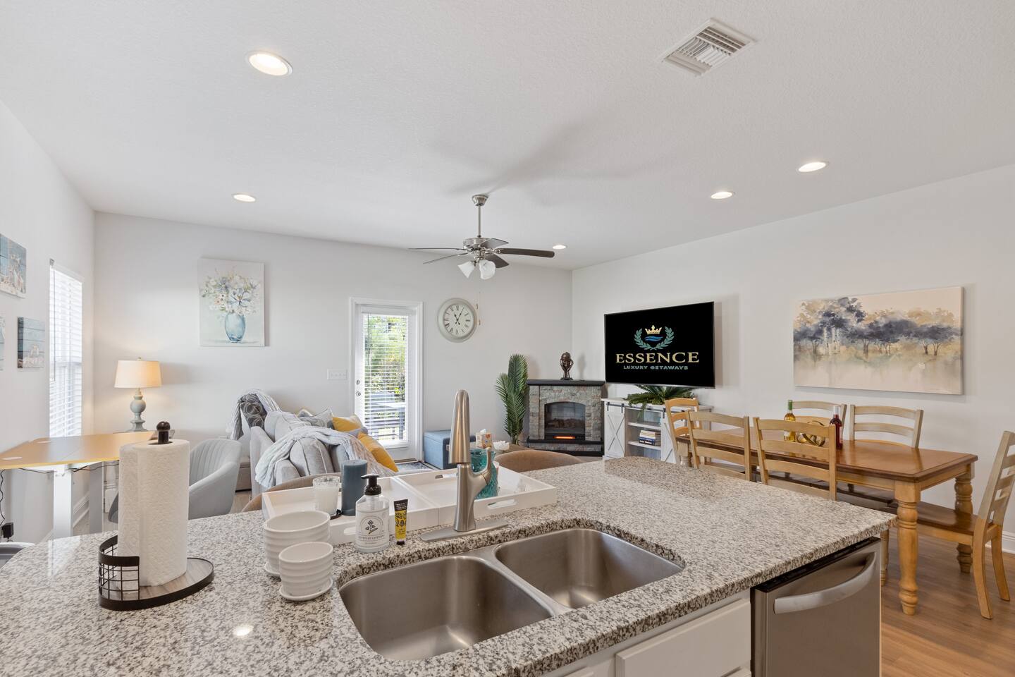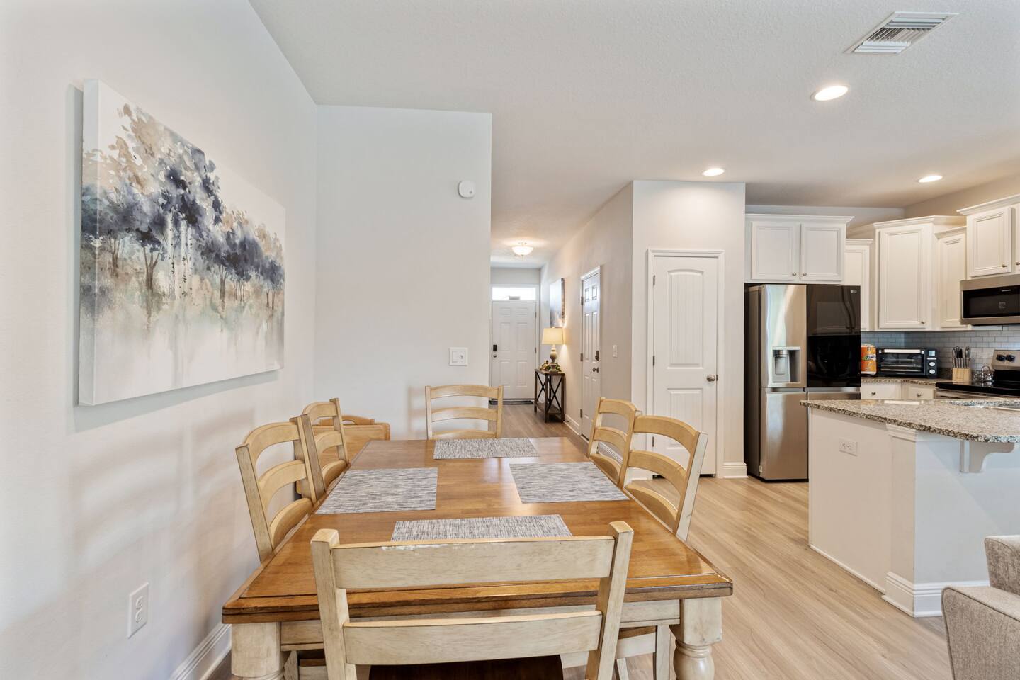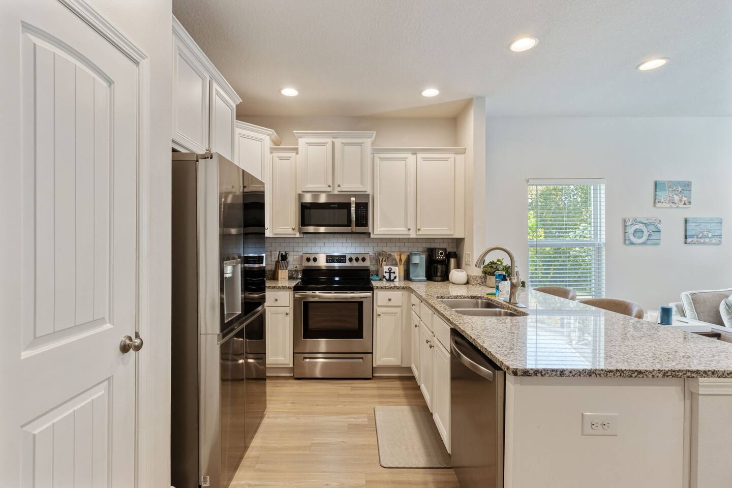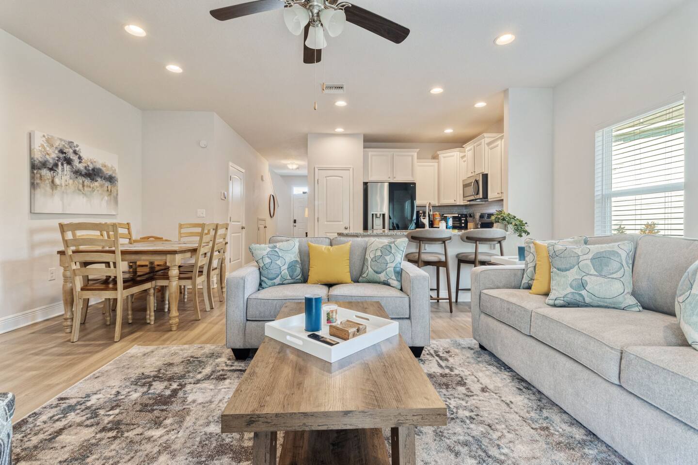 What You’ll Love About the Space Welcome to Paradise on Pointe, A stylish corner-unit townhome that offers the perfect mix of comfort, space, and convenience just minutes from the sugar-white sands of Panama City Beach. Spacious Layout for Relaxation and Gathering This home features 3 bedrooms and 2.5 bathrooms, giving everyone plenty of space to relax. The open-concept living area is designed with comfort in mind you can kick off your shoes and unwind on the cozy sectional sofa as natural light fills the room. It's a great spot to spend time together after a day at the beach. Modern Kitchen & Dining The fully equipped kitchen is perfect for morning coffee or cooking meals at home. It flows seamlessly into the spacious dining area, where you can enjoy meals together, play games, or simply connect and relax. Comfortable Bedrooms Each bedroom is thoughtfully decorated with coastal-inspired touches, creating a peaceful atmosphere for a good night’s sleep. The master bedroom includes an ensuite bathroom, while the other two bedrooms share a second full bathroom. There’s also a half bathroom downstairs for added convenience. Prime Location You’ll be just a short drive from Panama City Beach’s best dining, shopping, and entertainment, as well as the beautiful beaches the area is known for. Resort-Style Ease From the calming décor to convenient amenities, every detail is designed to make your stay stress-free and comfortable whether you’re here for a family vacation, group trip, or romantic beach escape.