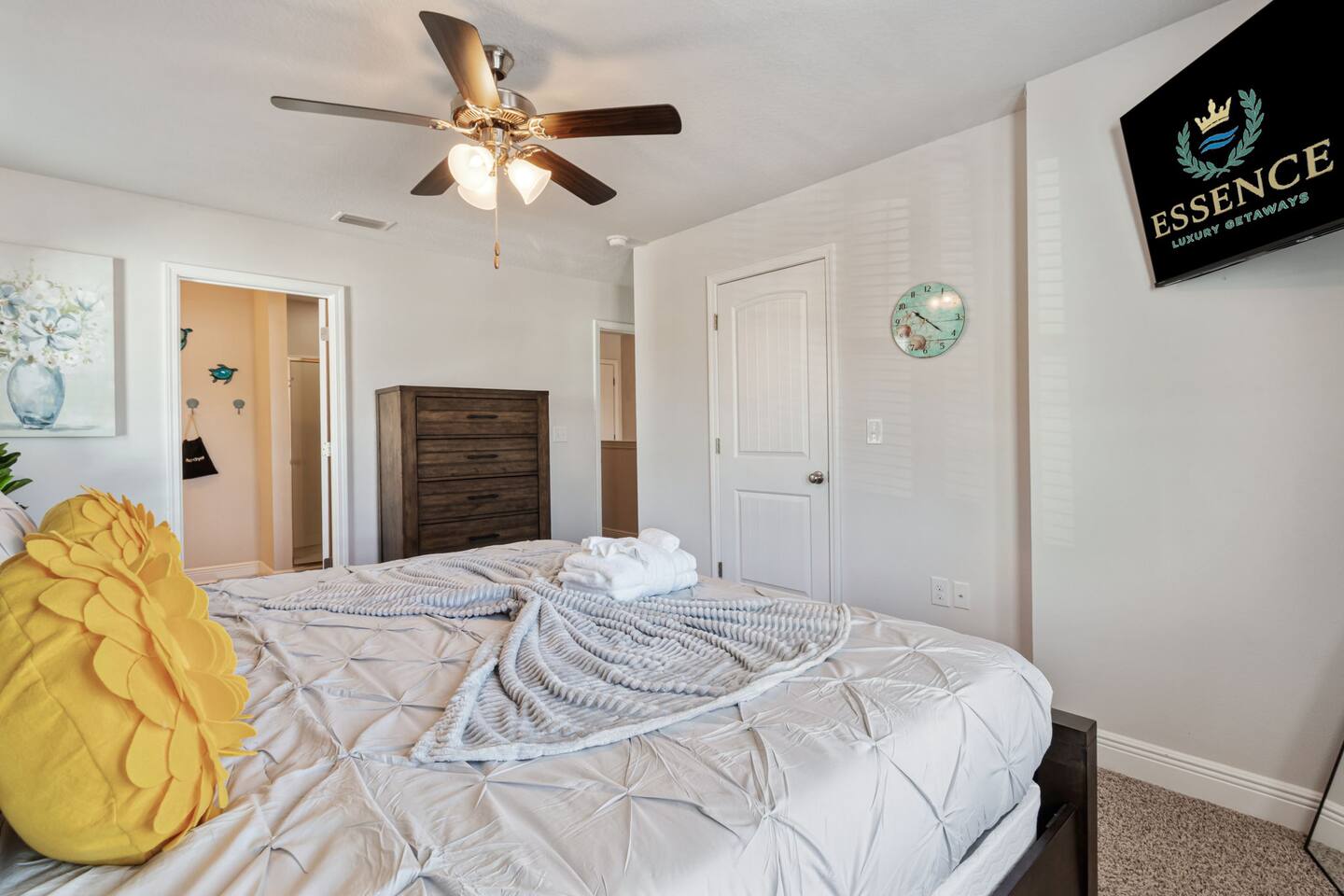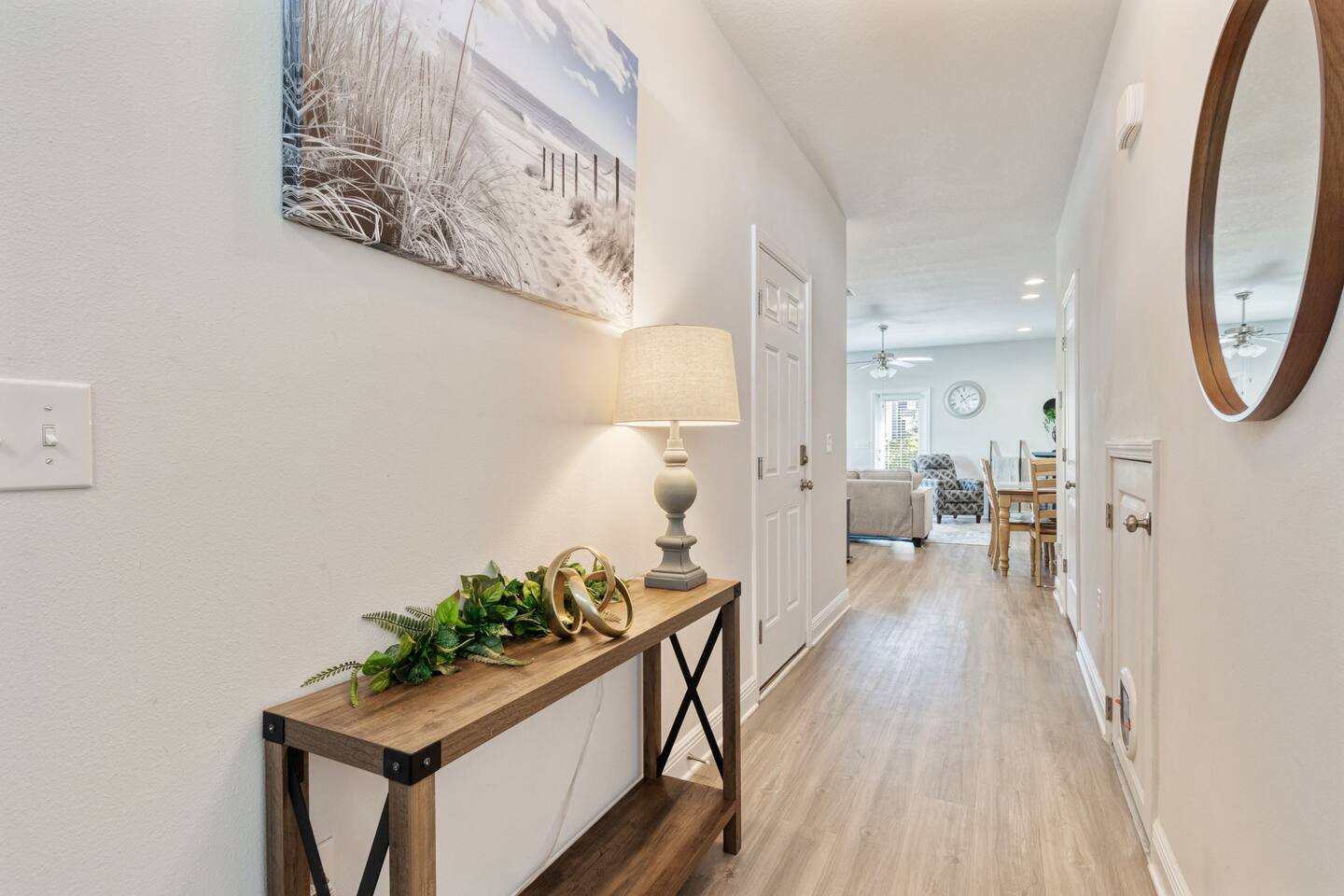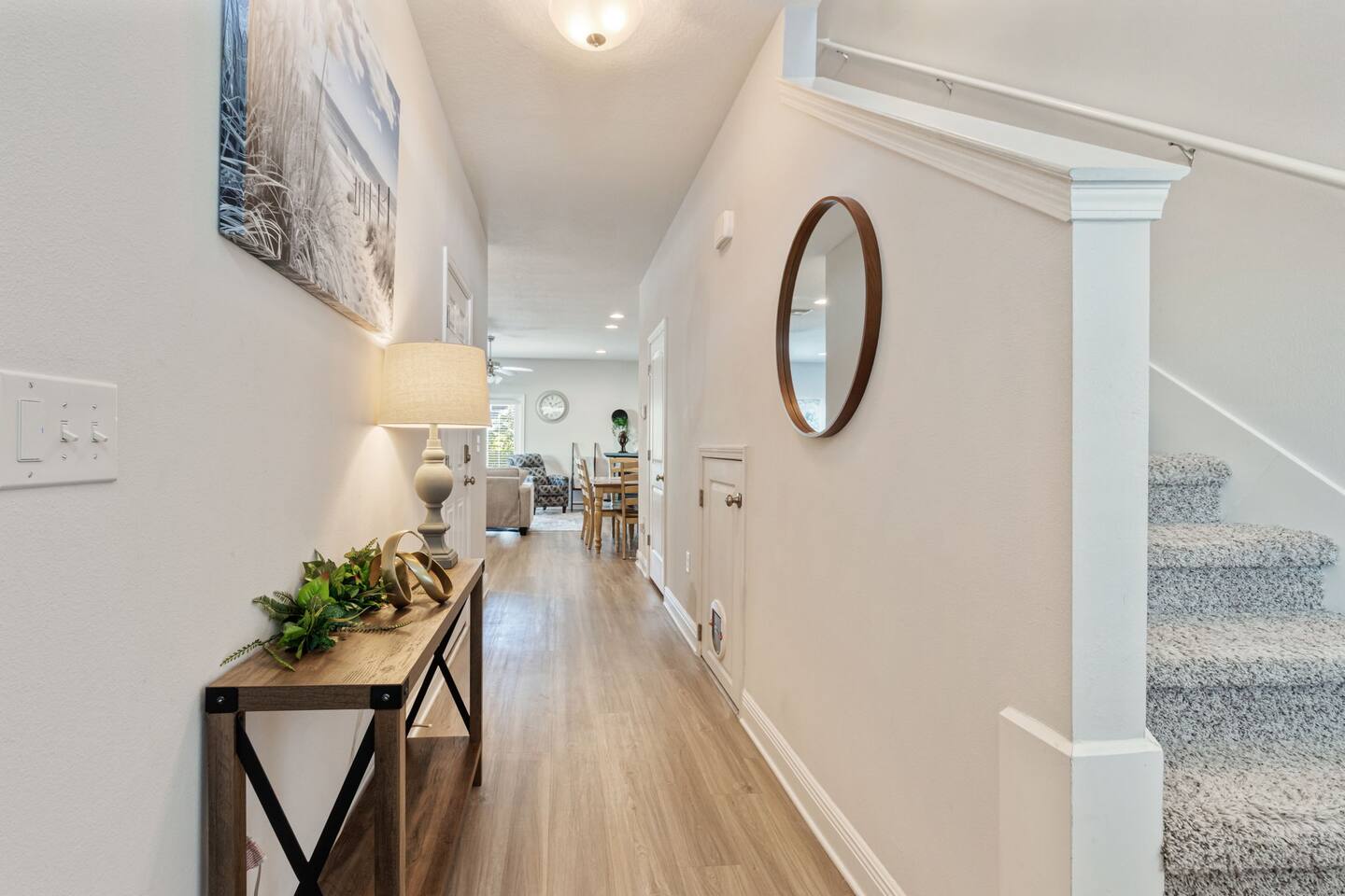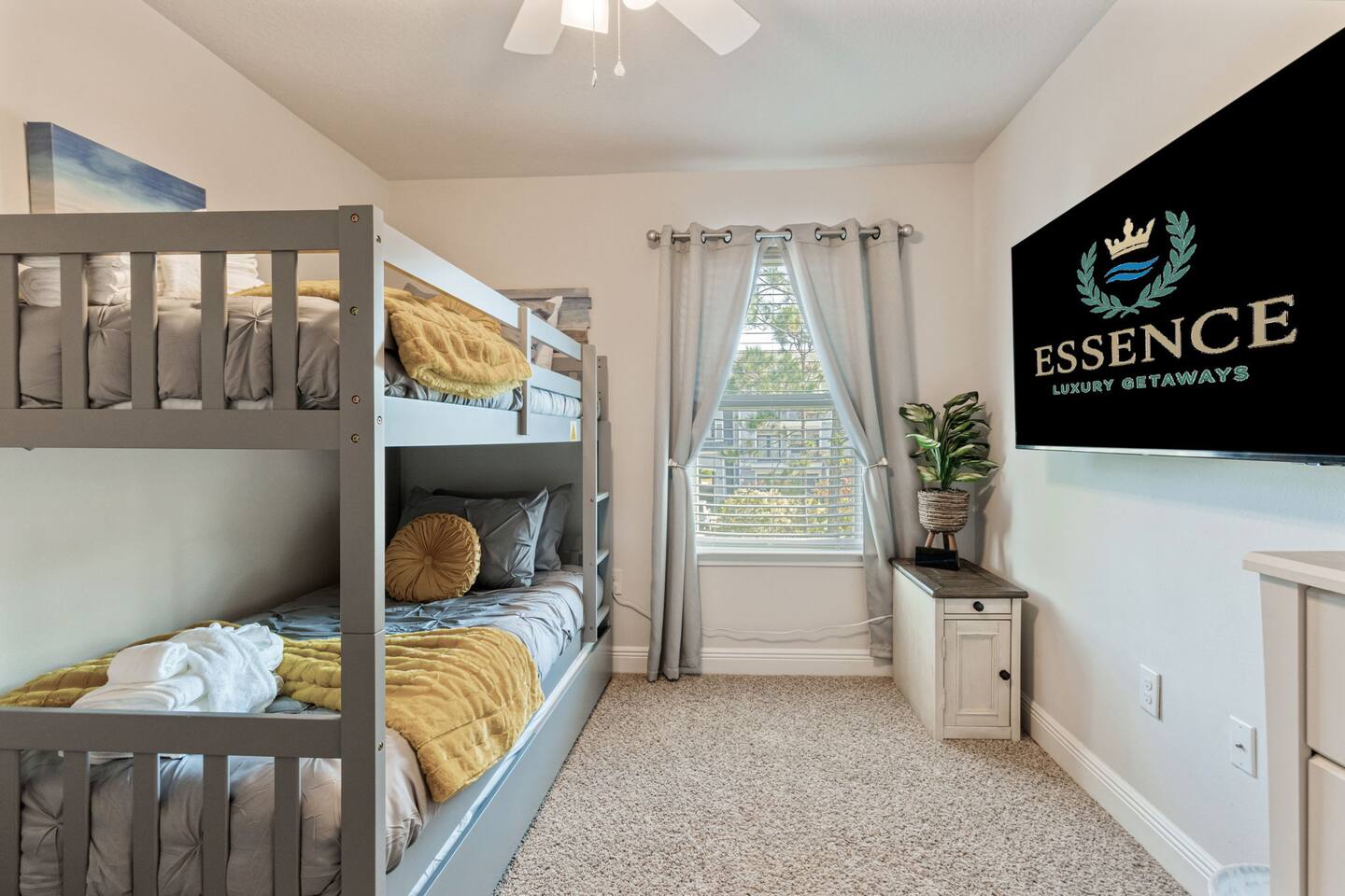 What You’ll Love About the Space Welcome to Paradise on Pointe, A stylish corner-unit townhome that offers the perfect mix of comfort, space, and convenience just minutes from the sugar-white sands of Panama City Beach. Spacious Layout for Relaxation and Gathering This home features 3 bedrooms and 2.5 bathrooms, giving everyone plenty of space to relax. The open-concept living area is designed with comfort in mind you can kick off your shoes and unwind on the cozy sectional sofa as natural light fills the room. It's a great spot to spend time together after a day at the beach. Modern Kitchen & Dining The fully equipped kitchen is perfect for morning coffee or cooking meals at home. It flows seamlessly into the spacious dining area, where you can enjoy meals together, play games, or simply connect and relax. Comfortable Bedrooms Each bedroom is thoughtfully decorated with coastal-inspired touches, creating a peaceful atmosphere for a good night’s sleep. The master bedroom includes an ensuite bathroom, while the other two bedrooms share a second full bathroom. There’s also a half bathroom downstairs for added convenience. Prime Location You’ll be just a short drive from Panama City Beach’s best dining, shopping, and entertainment, as well as the beautiful beaches the area is known for. Resort-Style Ease From the calming décor to convenient amenities, every detail is designed to make your stay stress-free and comfortable whether you’re here for a family vacation, group trip, or romantic beach escape.